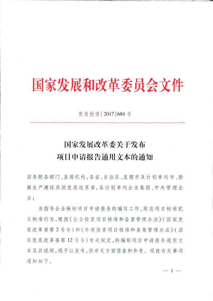 國(guó)家發(fā)改委關(guān)于發(fā)布項(xiàng)目申請(qǐng)報(bào)告通用文本的通知