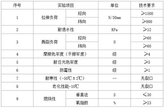 具有防水、防寒、防霉、阻燃、耐老化功能,并具有材輕、抗拉強度高、耐酸堿、抗高溫、洗刷折疊方便等特點;