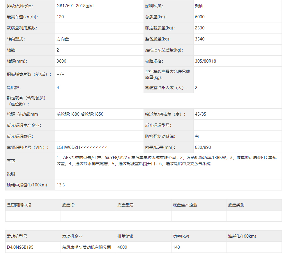 東風(fēng)猛士民用版EQ2063EYY6J型長(zhǎng)頭單排四驅(qū)越野底盤(pán)是東風(fēng)越野車(chē)公司針對(duì)民用方面的首款軍轉(zhuǎn)民產(chǎn)品代表,其繼承東風(fēng)軍用猛士的正規(guī)血統(tǒng),品質(zhì)優(yōu)異,技術(shù)過(guò)硬。東風(fēng)猛士民用版EQ2063EYY6J采用東風(fēng)猛士M50型四驅(qū)底盤(pán)改造而成,采用東風(fēng)康明斯D4.0NS6B195型國(guó)六柴油發(fā)動(dòng)機(jī),195馬力 ,排量4L帶增壓,最大扭矩600/1100-2200(N.m/r/min);猛士5擋軍用手動(dòng)變速箱;分動(dòng)箱為四輪全時(shí)驅(qū)動(dòng)帶高低擋;軸距3800mm;整備質(zhì)量3540kg;核定載質(zhì)量2460kg;輪胎采用305/80R18MPT全鋼子午線(xiàn)輪胎,帶自動(dòng)中央充放氣系統(tǒng);整車(chē)總質(zhì)量6000kg,國(guó)六B排放全國(guó)可上黃牌,整車(chē)尺寸:5320*2310*1950mm;最小離地間隙388mm,最大垂直越障400mm,通過(guò)性強(qiáng),適應(yīng)高海拔極寒極熱地區(qū),全國(guó)暢行無(wú)阻,最高車(chē)速可達(dá)120km/h。