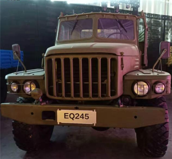 1983年投入生產的3.5噸級東風EQ245型6×6軍用越野車是二汽研發(fā)的第二種越野車基本車型。東風EQ245型6×6驅動3.5噸系列卡車(原來稱EQ245)從EQ240(EQ2081)2.5噸軍車系列派生而來,稍大,但視覺上相似。其最新生產型車輛稱為EQ2100E6D(右側駕駛和動力轉向型為EQ2100E6DY),配備康明斯6BT5.9型5.88升渦輪增壓柴油機。較早的EQ2100E配備的是EQ6105-1汽油發(fā)動機。