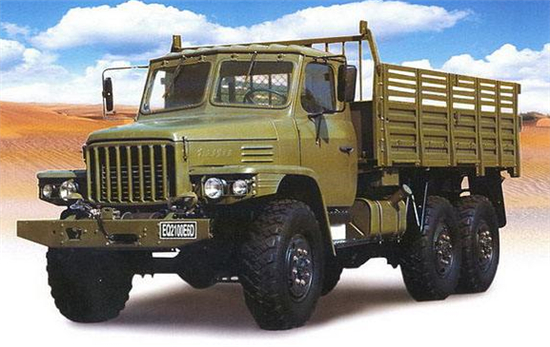 東風EQ2081型 6×6 驅動2.5噸系列卡車于1975年以東風EQ240的名稱開始服役,是東風公司的首款產品。最初的EQ240配備的是EQ6100/6105汽油發(fā)動機,一直在不斷的改進,自20世紀80年代以來嵌入了大量的新技術。其現(xiàn)役車型命名為EQ2081E,配備經過改進的EQ6100-1B汽油發(fā)動機。EQ240在20世紀90年代由于采用新的汽車命名系統(tǒng)改為EQ2081。EQ2082E6D安裝了康明斯6BT5.9型5.88升柴油發(fā)動機。