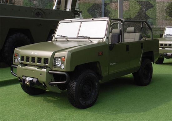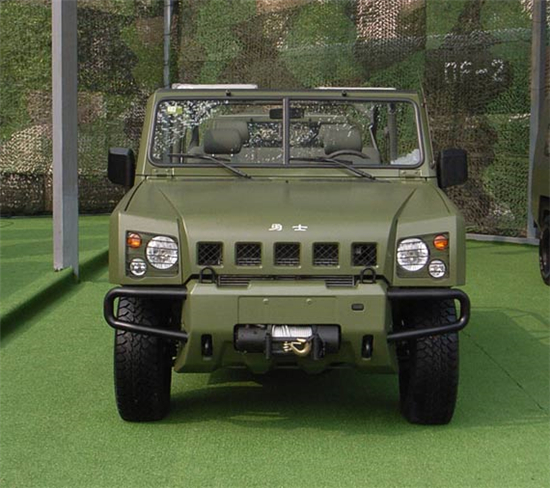 2007年8月2日,北汽控股公司在位于北京市順義區(qū)的北京汽車制造廠有限公司隆重舉行慶祝建軍80周年暨北京·勇士下線儀式。北汽勇士BJ2022型4×4軍用越野車自2007年列裝部隊(duì)以來,“勇士”越野車作為我軍第二代軍用指揮車,常年活躍在演訓(xùn)場(chǎng)上和邊防線上。2008年、2009年北汽勇士軍用車參加并圓滿完成汶川地震搶險(xiǎn),打擊暴恐勢(shì)力等多次重要軍事行動(dòng)!坝率俊笔怯杀本┢囍圃鞆S有限公司自主開發(fā)的,擁有完全自主知識(shí)產(chǎn)權(quán)的中國(guó)21世紀(jì)0.5噸/0.75噸級(jí)越野車!坝率俊蓖獠吭煨褪窃谘芯苛藲W、美、日三大流派越野車造型發(fā)展趨勢(shì)的基礎(chǔ)上,結(jié)合中國(guó)文化特色和中國(guó)越野車的特點(diǎn)而設(shè)計(jì)的,具有原創(chuàng)性。