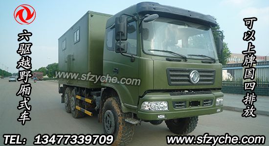 東風六驅越野廂式車采用東風越野卡車底盤DFS5160GLJ ,東風153平頭一排半駕駛室,6*6驅動,康明斯185馬力,韶齒6檔變速箱,斷氣彈簧制動,貫通式中后驅動橋,12.5R20越野胎,軸距 3500+1250mm,加厚雙層大梁,貨箱4850mm,帶軍用保險杠。六驅越野廂式車,廂體根據用戶需要形式多樣,選裝多樣,可以選裝空調、側門、側窗、發(fā)動機、裙邊結構等,是越野車友改裝簡易越野房車的最好選擇。銷售熱線:13477339709 李經理 0722-7053060 業(yè)務QQ:530233927,東風越野卡車網址:m.shabbychicwny.com 東風越野車:www.dfyyc.com