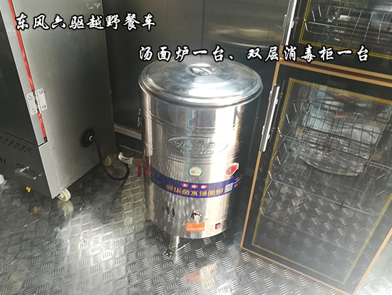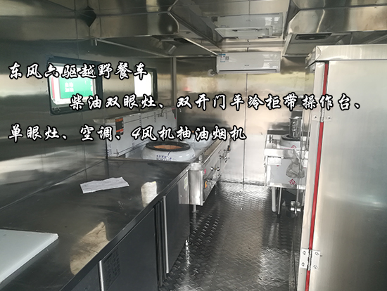 東風六驅越野餐車車輛概述:采用東風國五越野底盤改裝, 車廂材質采用外冷軋鋼板,內飾不銹鋼,中間保溫層,隱藏式上車踏步,頂部安全窗,兩個副食灶,一個蒸飯車,抽油煙機,平冷柜,水路,電路,油路等。