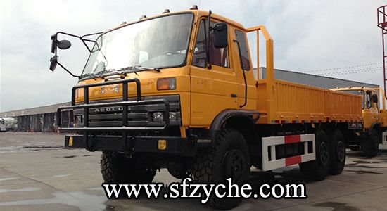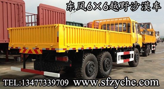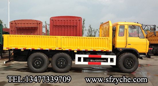 2、詳細配置:平頭一排半駕駛室,6*6驅(qū)動,康明斯190馬力,韶齒6檔變速箱,斷氣彈簧制動,貫通式中后驅(qū)動橋,12.5R20越野胎,軸距 3500+1250mm,加厚雙層大梁,貨箱4850mm,帶軍用保險杠。(新款仿天錦駕駛室加價1.5萬元)東風越野卡車:m.shabbychicwny.com